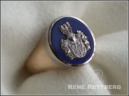 Bei dieser aufwendigsten Art der Wappenringherstellung lassen wir die metallene Wappengravur in einem Stein Ihrer Wahl als passgenaues Inlay ein. Anders als bei unseren meisten Mitbewerbern kann sich hierdurch niemlas ein Faden Ihrer Kleidung darunter verhaken!